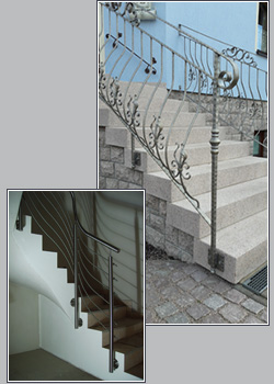 Treppen in - Stahl-Holz Kombination - Stahl-Stein Kombination als - geradläufige Treppen - Spindeltreppen - gewendelte Treppen Geländer in - Stahl - Edelstahl mit und ohne Füllung